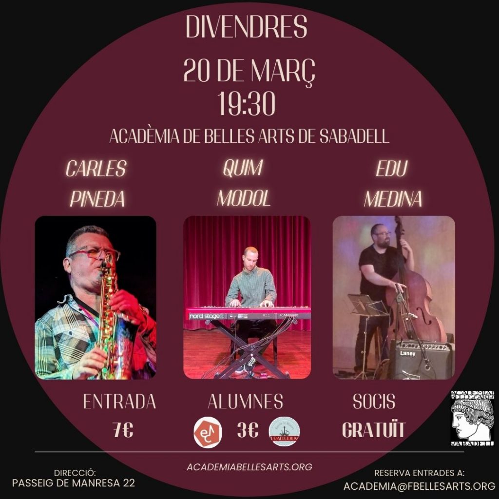Preu: Membres col·laboradors de l’Acadèmia: Gratuït Entrada general: 7€ Membres de l’Aula d’extensió universitària de Sabadell: 6€ Estudiants: 4€ Estudiants del Conservatori de Sabadell i el ESMUC: 3€ Membres del Club Xamba de Salut Mental de Sabadell: 3€