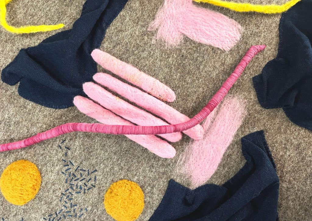 Collarets, tapets i quadres es converteixen en petits territoris emocionals on el fil, guiat per la memòria, es mou amb llibertat. Obres que celebren la sensibilitat, la paciència i la possibilitat de convertir allò vulnerable en una cosa que acompanya, que abraça, que il·lumina.